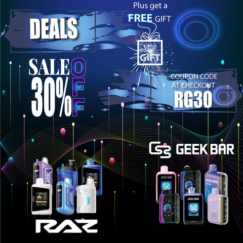 FLASH SALE SAVE 30% OFF ON GEEK BAR & RAZ VAPES.